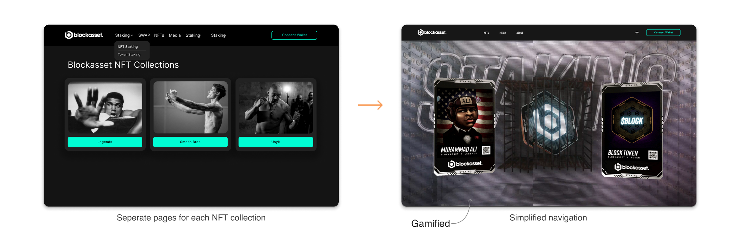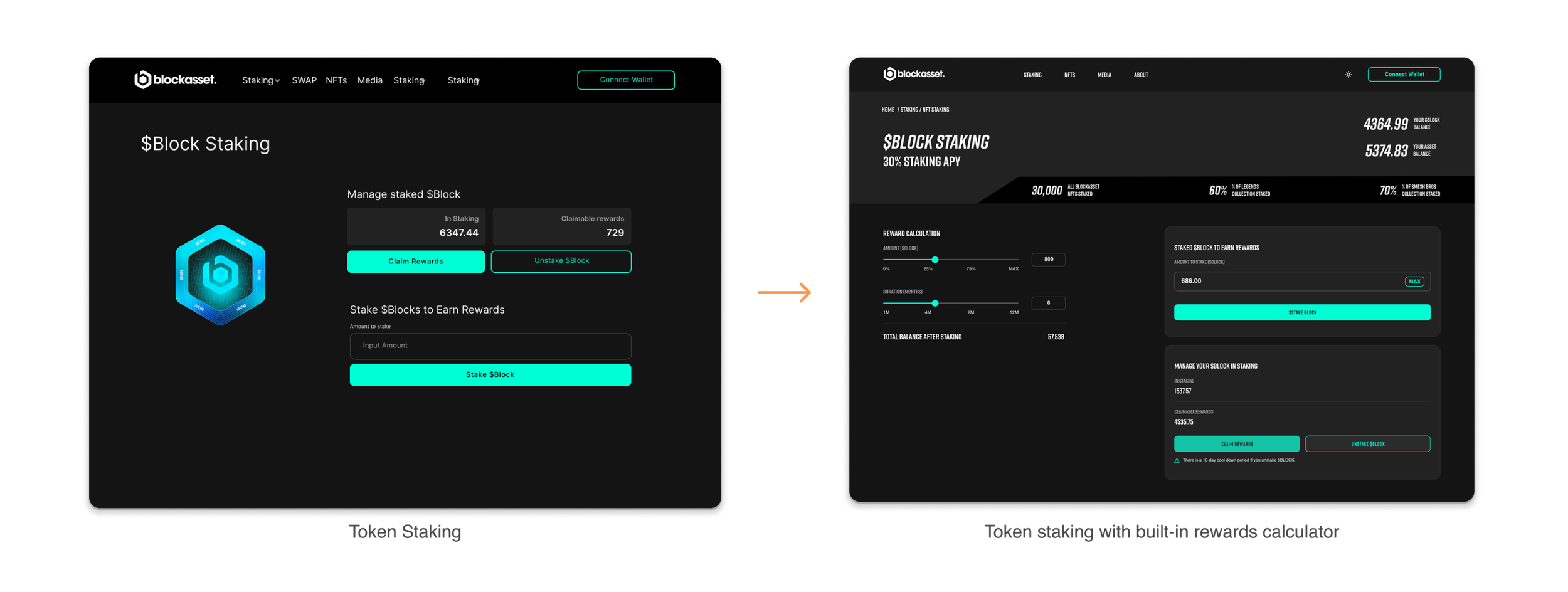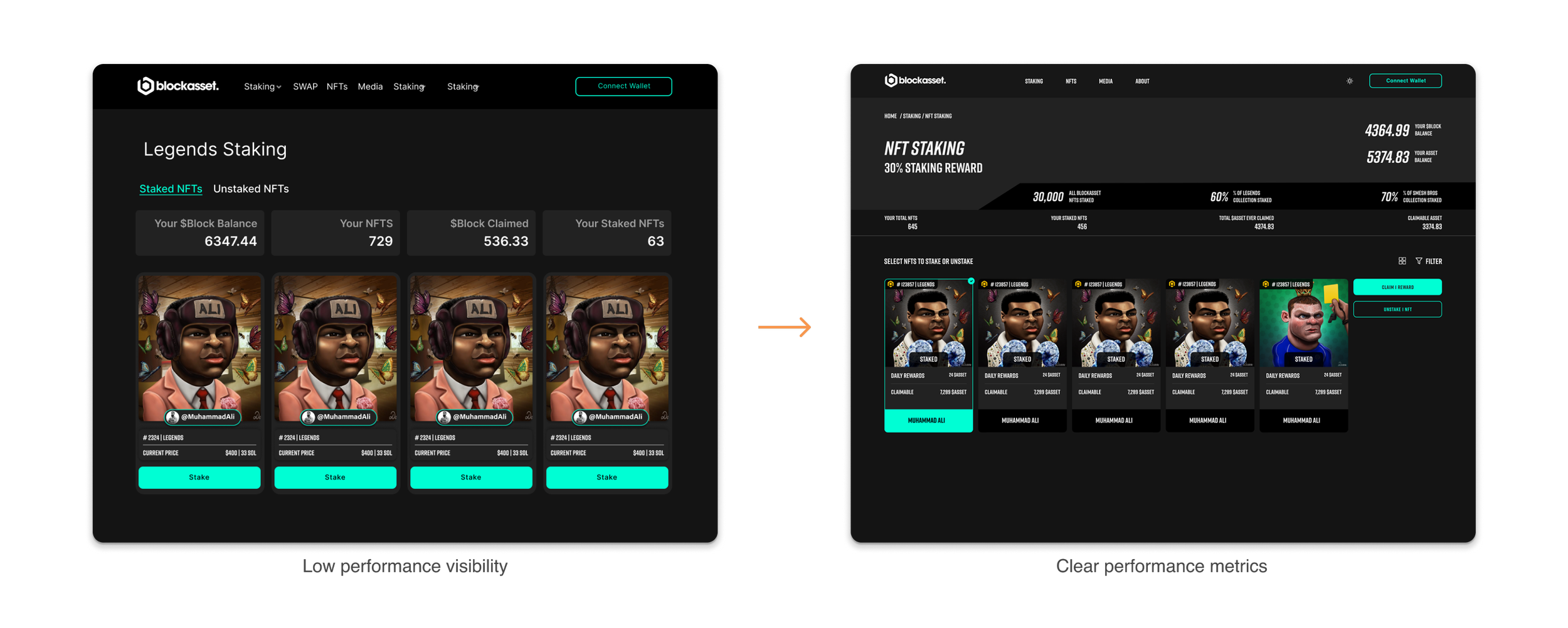 Before exploring the need for improvements, here’s a brief introduction to staking at BlockAsset. Users can stake digital assets, including tokens and athlete NFTs created by world-renowned artists. By locking these assets, users earn rewards while athletes build stronger connections with their fanbase. For the platform, this boosts user retention and engagement, creating a more dynamic and sustainable ecosystem.