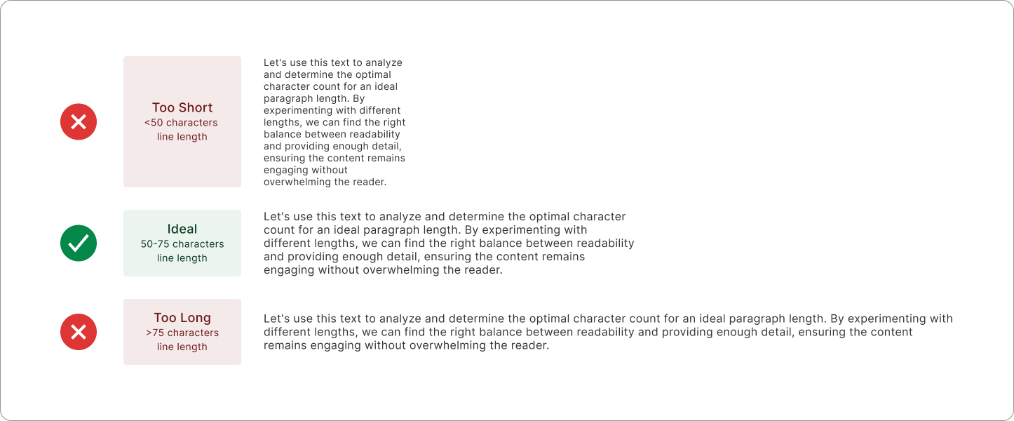 Lines of text that are too long or too short can make reading uncomfortable. Aim for a line length of around 50–75 characters per line to optimize readability.